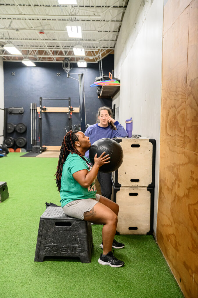 If you’re someone who knows you can’t squat below parallel right now, make it your goal the next three months to use a medball or a box to squat to every single time a squat movement appears in the workout. Use minimal to no loads until you CAN squat below parallel without assistance and without pain. I promise you, your quality of life WILL improve, and you’ll start feeling better. Sometimes, in order to get better, we have to take a step back.